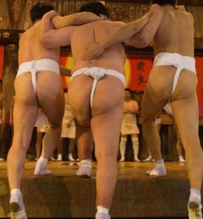 裸体节又叫“会阳节”:参加者都是男性,他们只系日本传统的兜裆布,几近全裸。每年2月的第三个星期,是举行裸体节的日子,而星期六晚上的活动是高潮,每年的这一天都有近万名男子赶来参加裸体争抢“宝木”的仪式,参观者也不计其数。“宝木”由6寸长、直径3寸的杉木挖成。人们对宝木痴迷的原因要追溯到1300多年前。据传,那时西大寺观音院刚刚建成,一位来自奈良的高僧将一种叫“修正会”的仪式传入此地。在这个仪式上,僧侣们把庙里的宝物用“牛玉纸”包好,放在千手观音像的背后,供奉14天,祈祷国家安定、五谷丰登、人民富足。仪式结束后,用来包宝物的纸由住持赠给年长的信徒。得到牛玉纸的家庭一年内果真顺顺当当、丰衣足食,于是,信徒们每年都来争抢牛玉纸,会阳节的风俗由此形成。到了500年前的室町时代,易碎的牛玉纸演变成杉木制成的宝木。当时的住持忠阿上人规定,由寺院抛下两块宝木,男性信徒自由争抢。